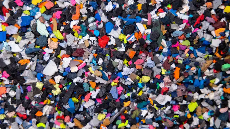 Stoer en urban. Gemaakt van gerecyclede sneakers, met een speelse textuur en een sterk circulair verhaal.