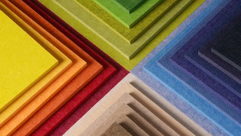 Akoestisch dempend, lichtgewicht en tactiel. Gemaakt van gerecyclede PET-flessen met een zachte, natuurlijke look.